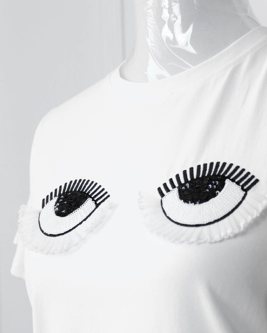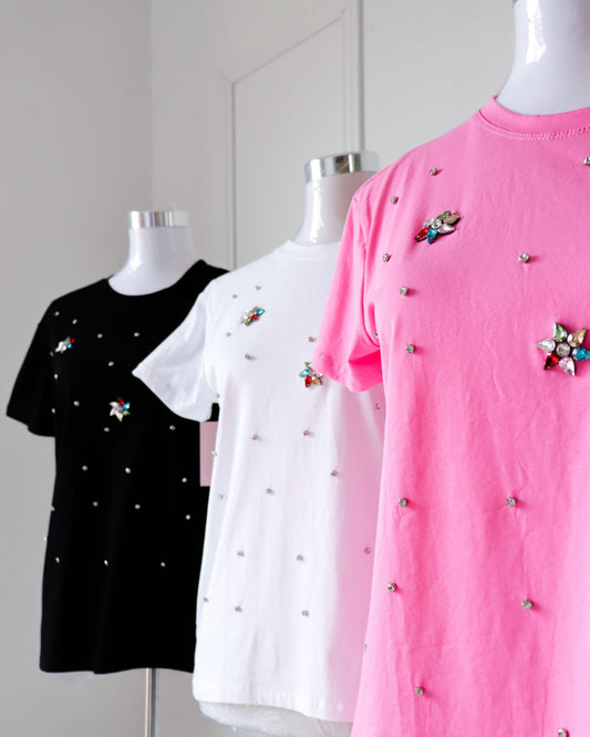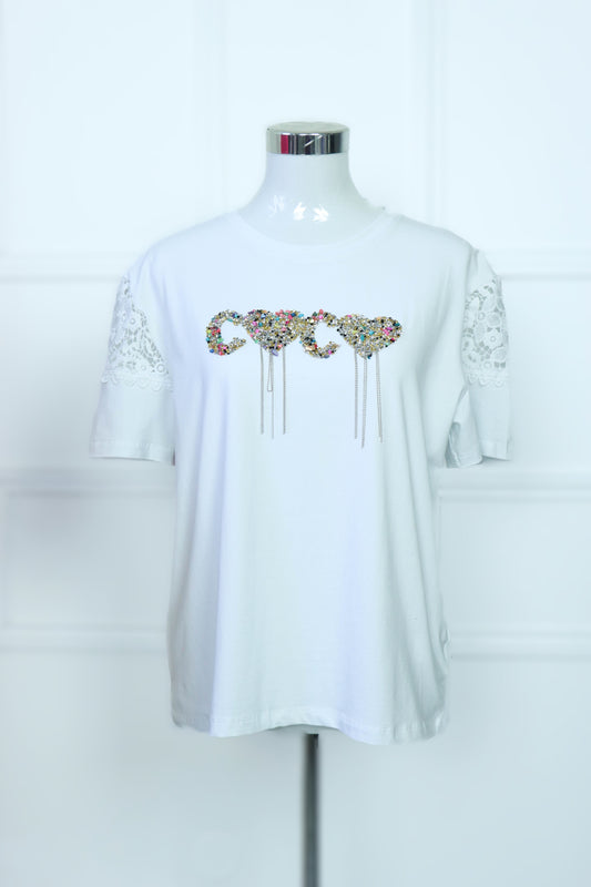 Em promoçãoT-shirt Branca com Aplicações de Pedras